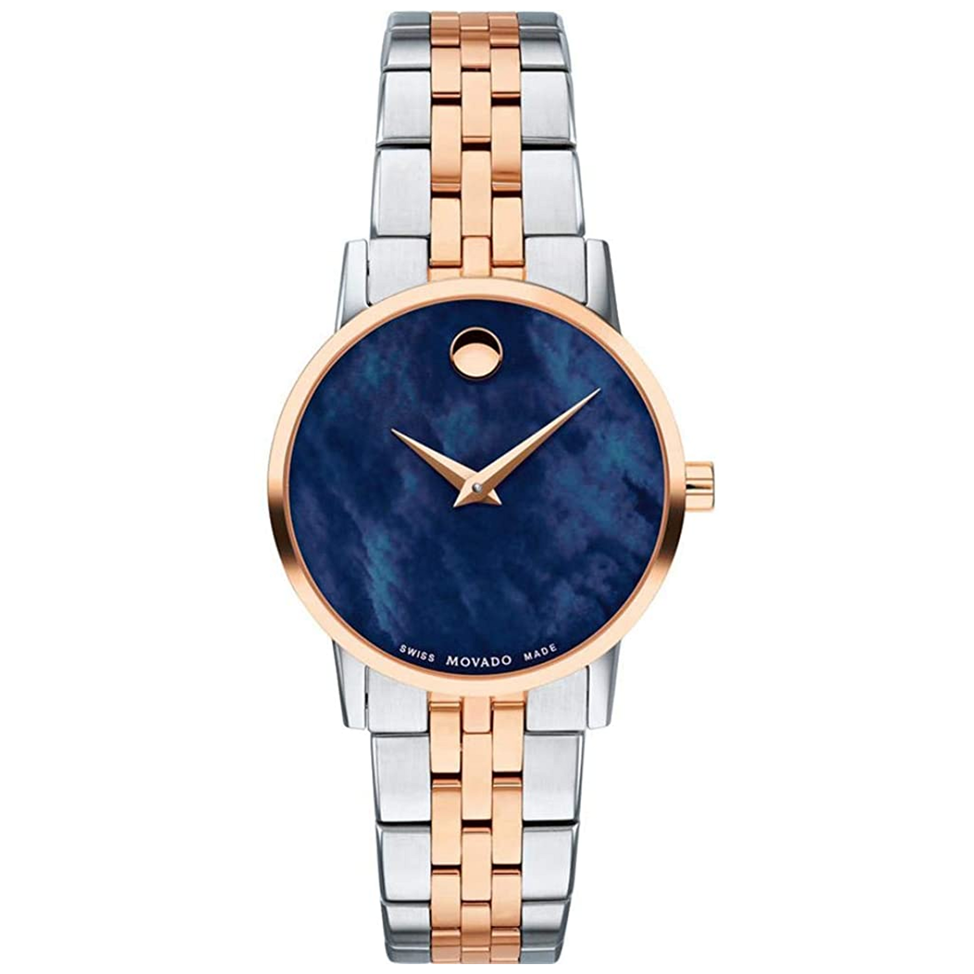 Possédez une œuvre d'art moderne. La Movado Museum Classic est mondialement connue pour son design élégant et intemporel et a été présentée dans certains des musées les plus prestigieux du monde. Ce modèle est doté d'un boîtier en PVD or rose de 28 mm associé à un cadran en nacre bleu marine accrocheur et à un bracelet bicolore en acier inoxydable/PVD or rose - parfaitement complété par des aiguilles signature et fines moulées dans une élégante finition plaquée or rose. Ne manquez pas ce chef-d'œuvre emblématique !