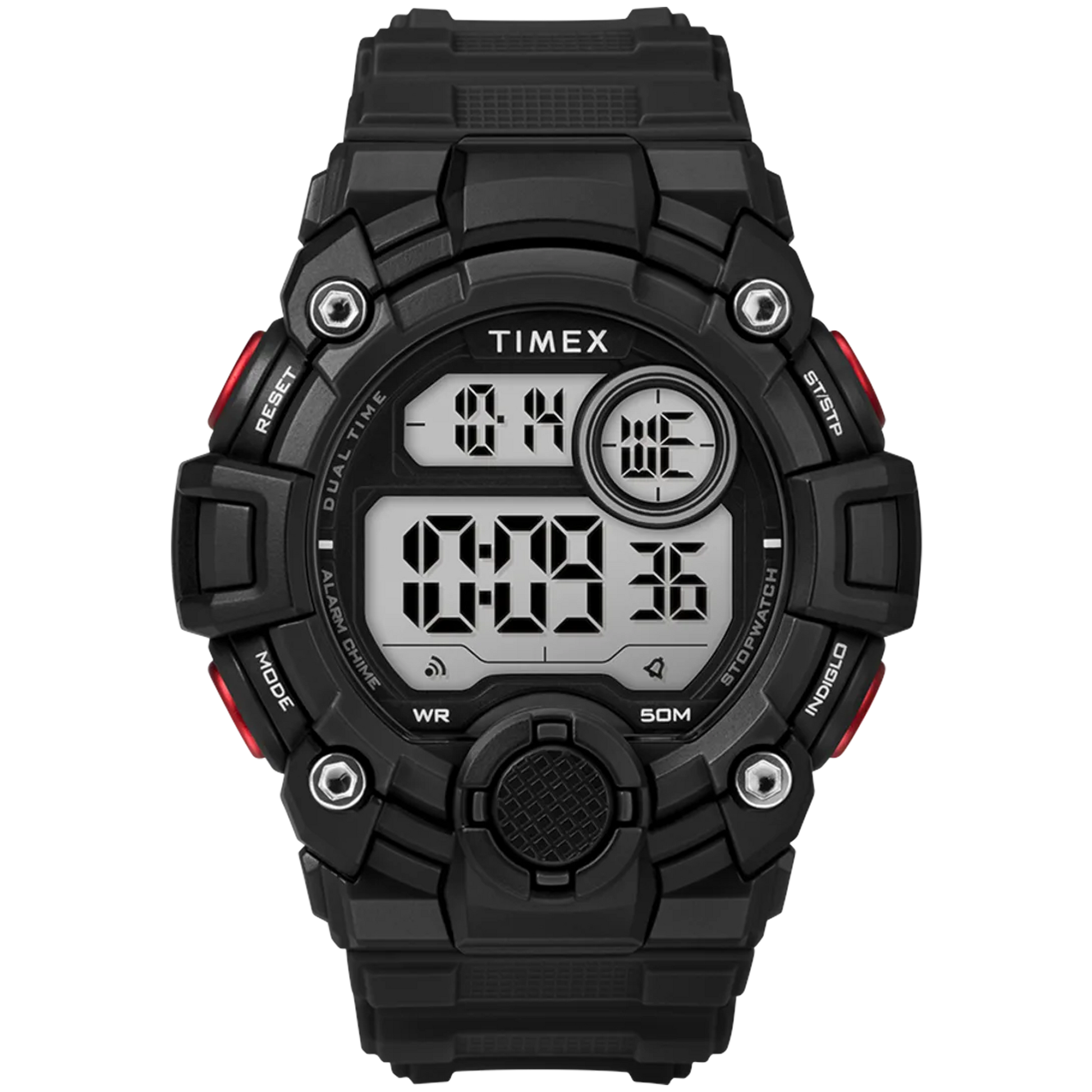 ਇਹ ਵੱਡੀ ਡਿਜੀਟਲ ਘੜੀ ਇੱਕ ਰਣਨੀਤਕ ਘੜੀ ਹੈ, ਜੋ ਨਵੀਨਤਾਕਾਰੀ ਡਿਜੀਟਲ ਤਕਨਾਲੋਜੀ ਅਤੇ ਪ੍ਰਸਿੱਧ ਟਿਕਾਊਤਾ ਨਾਲ ਬਣਾਈ ਗਈ ਹੈ ਤਾਂ ਜੋ ਰੋਜ਼ਾਨਾ ਜੀਵਨ ਦੀਆਂ ਮੰਗਾਂ ਨੂੰ ਪੂਰਾ ਕਰਨਾ ਆਸਾਨ ਦਿਖਾਈ ਦੇਵੇ। ਲਾਲ ਲਹਿਜ਼ੇ ਅਤੇ ਕਾਲੇ ਪੱਟੀ ਵਾਲੇ ਸਲੇਟੀ ਰੇਜ਼ਿਨ ਕੇਸ ਨੂੰ 50 ਮੀਟਰ ਤੱਕ ਪਾਣੀ ਪ੍ਰਤੀਰੋਧ ਲਈ ਸੀਲ ਕੀਤਾ ਗਿਆ ਹੈ, ਅਤੇ ਸਾਡੀ INDIGLO® ਬੈਕਲਾਈਟ ਨਾਲ, ਤੁਸੀਂ ਸਾਰੀ ਰਾਤ ਕੰਮ ਕਰਨ ਲਈ ਤਿਆਰ ਹੋ।