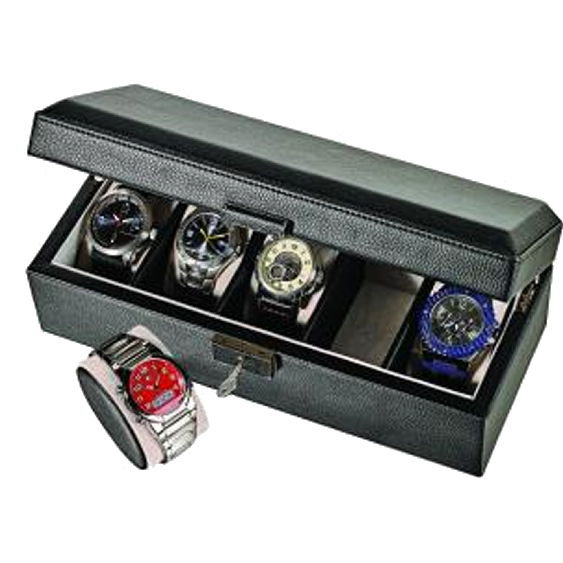 ਜੇਬ ਦੇ ਨਾਲ ਅਲਪਾਈਨ ਬਲੈਕ ਲੈਦਰੇਟ ਵਾਚ ਬਾਕਸ (5 ਘੜੀਆਂ ਲਈ)