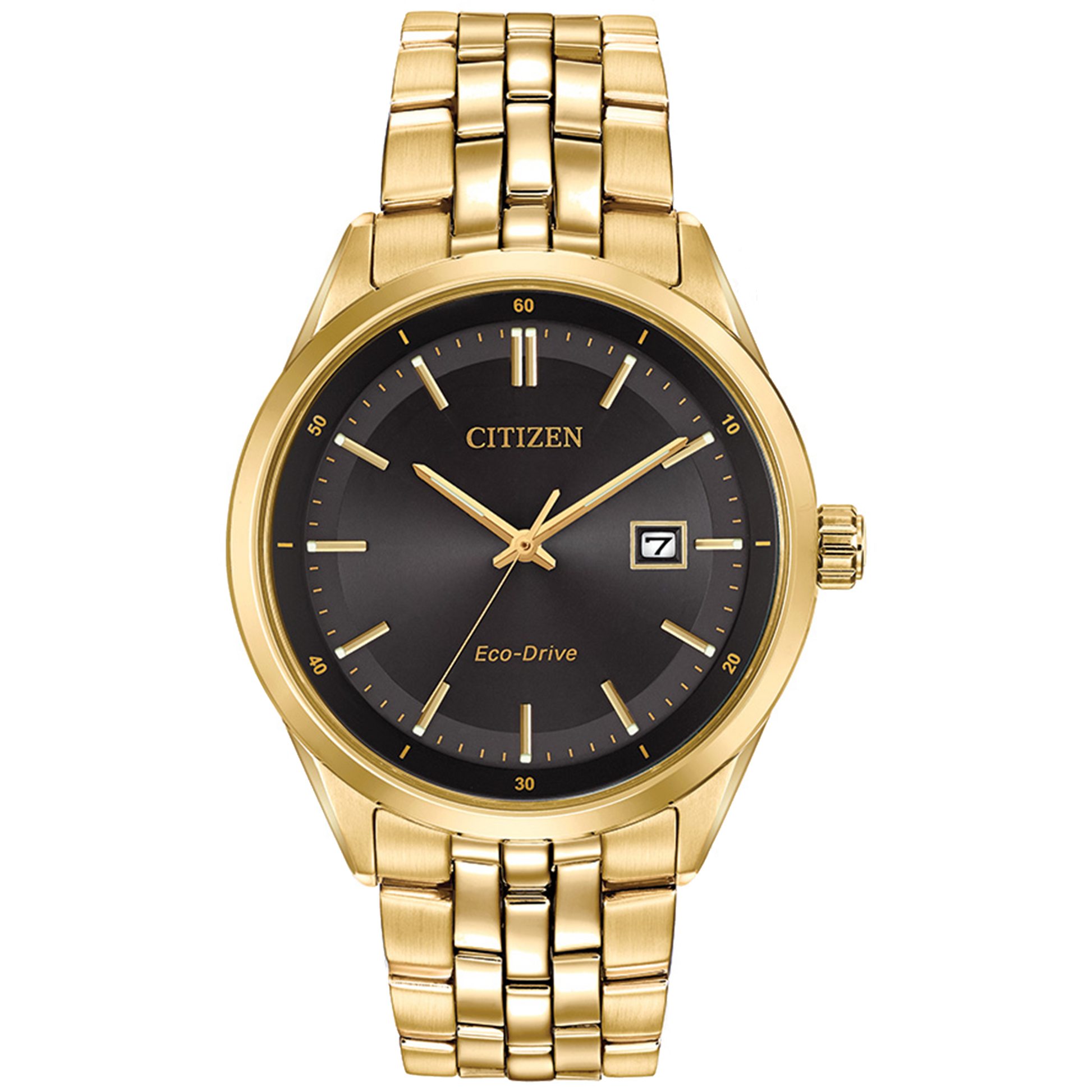 ਇੱਕ ਸਲੀਕ ਡਿਜ਼ਾਈਨ ਦੇ ਨਾਲ, CITIZEN® ਦੇ ਕੋਰਸੋ ਸੰਗ੍ਰਹਿ ਦਾ ਇਹ ਘੜੀ, ਜਿਸ ਵਿੱਚ ਨੀਲਮ ਕ੍ਰਿਸਟਲ ਅਤੇ ਤਾਰੀਖ ਹੈ, ਯਕੀਨੀ ਤੌਰ 'ਤੇ ਧਿਆਨ ਖਿੱਚੇਗੀ। ਇਸਨੂੰ ਸੋਨੇ ਦੇ ਟੋਨ ਵਾਲੇ ਸਟੇਨਲੈਸ ਸਟੀਲ ਦੇ ਕੇਸ ਅਤੇ ਕਾਲੇ ਡਾਇਲ ਦੇ ਨਾਲ ਬਰੇਸਲੇਟ ਨਾਲ ਦਿਖਾਇਆ ਗਿਆ ਹੈ।