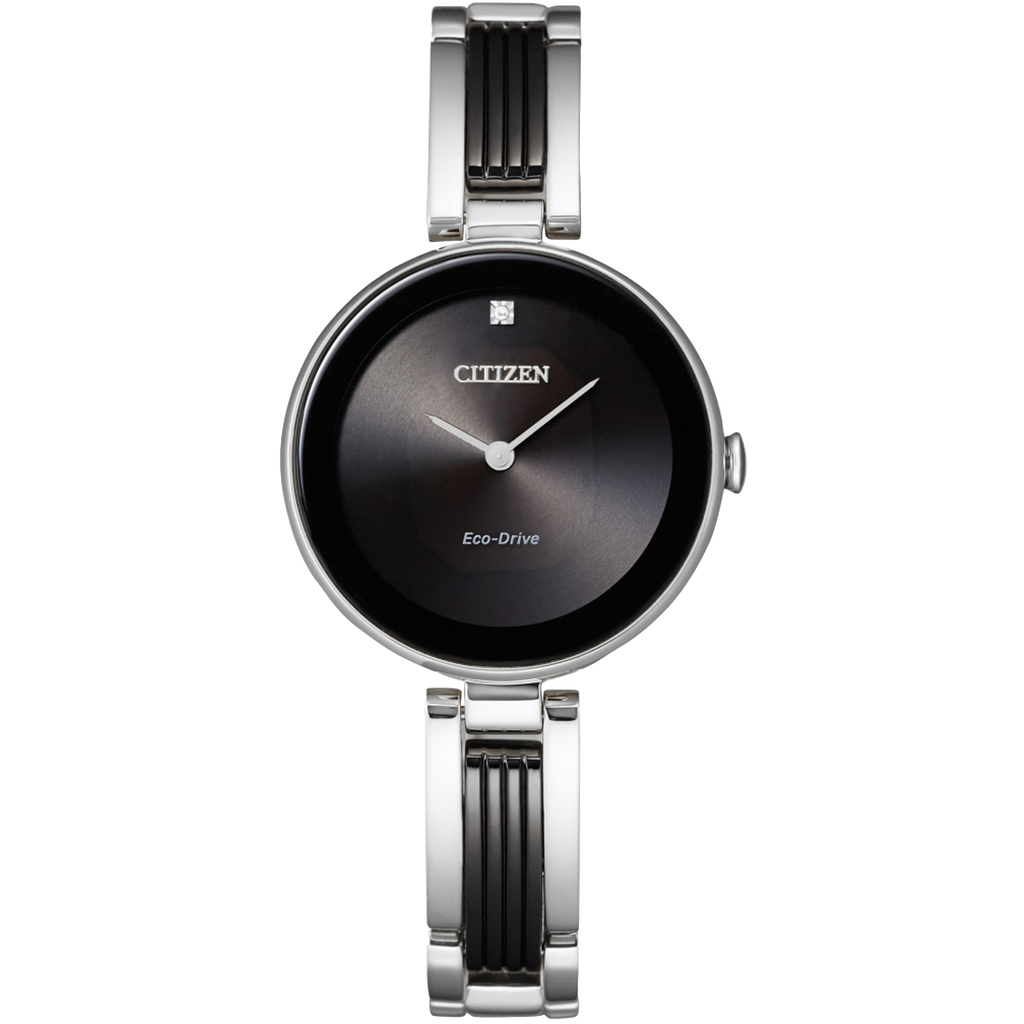 ਇਹ CITIZEN® ਘੜੀ ਕਲਾਸਿਕ Axiom ਸੰਗ੍ਰਹਿ 'ਤੇ ਇੱਕ ਆਧੁਨਿਕ ਸਪਿਨ ਪੇਸ਼ ਕਰਦੀ ਹੈ। ਇਸ ਵਿੱਚ ਇੱਕ ਕਾਲਾ ਡਾਇਲ ਹੈ ਜੋ ਇੱਕ ਸਲੀਕ ਅਤੇ ਸੂਝਵਾਨ ਦਿੱਖ ਲਈ ਇੱਕ ਕਿਨਾਰੇ ਤੋਂ ਕਿਨਾਰੇ ਵਾਲੇ ਕ੍ਰਿਸਟਲ ਦੇ ਹੇਠਾਂ 1 ਹੀਰੇ ਦੇ ਸੈੱਟ ਨਾਲ ਸਜਾਇਆ ਗਿਆ ਹੈ। ਈਕੋ-ਡਰਾਈਵ ਤਕਨਾਲੋਜੀ ਦੁਆਰਾ ਸੰਚਾਲਿਤ, ਇਹ ਘੜੀ ਹਮੇਸ਼ਾ ਇੱਕ ਵਿਅਸਤ ਕੰਮ ਵਾਲੇ ਦਿਨ ਜਾਂ ਦਿਲਚਸਪ ਰਾਤ ਲਈ ਤਿਆਰ ਰਹੇਗੀ।