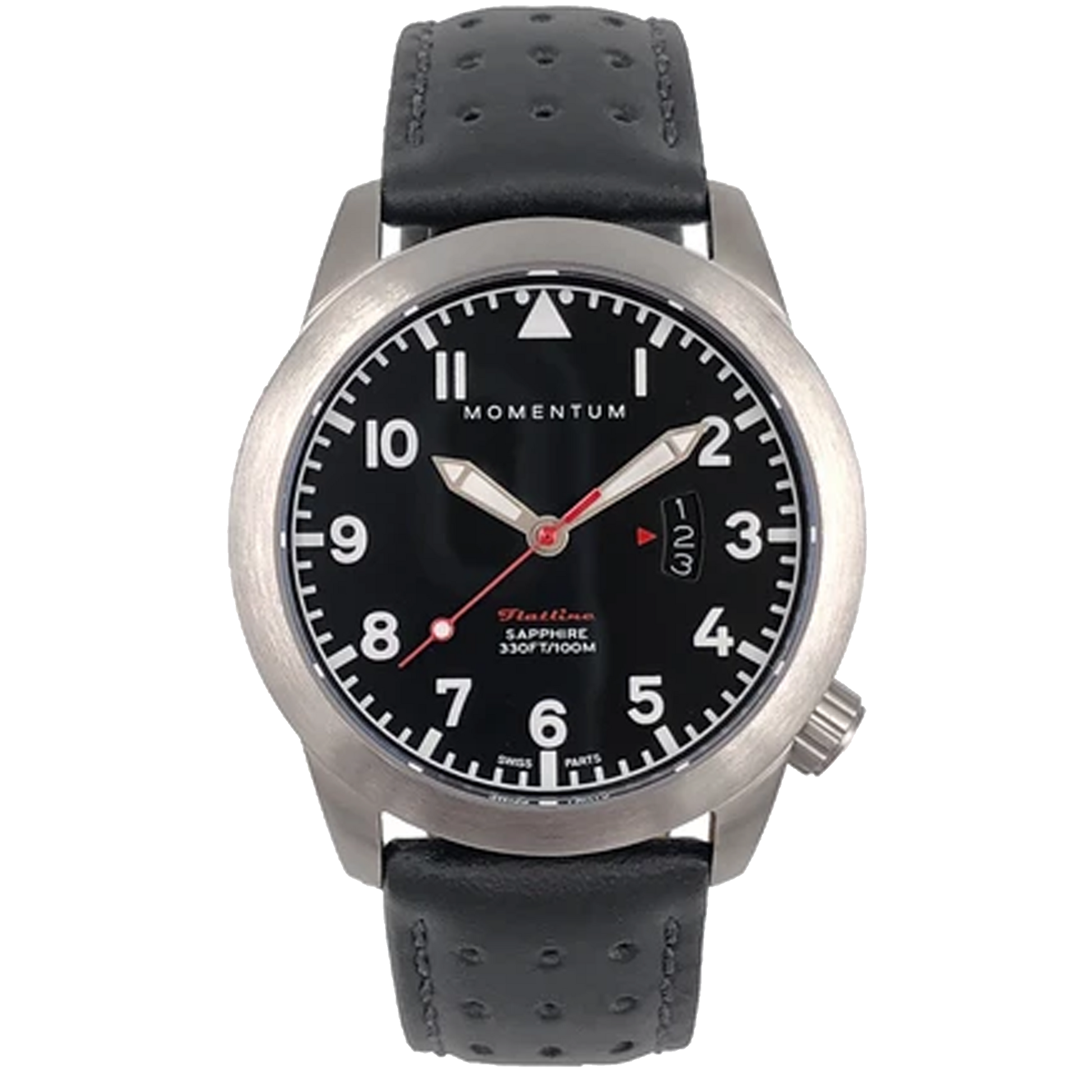 ਮੋਮੈਂਟਮ ਫਲੈਟਲਾਈਨ 42MM - ਕਾਲੇ ਪਰਫੋਰੇਟਿਡ ਚਮੜੇ ਦੇ ਨਾਲ ਕਾਲਾ ਡਾਇਲ