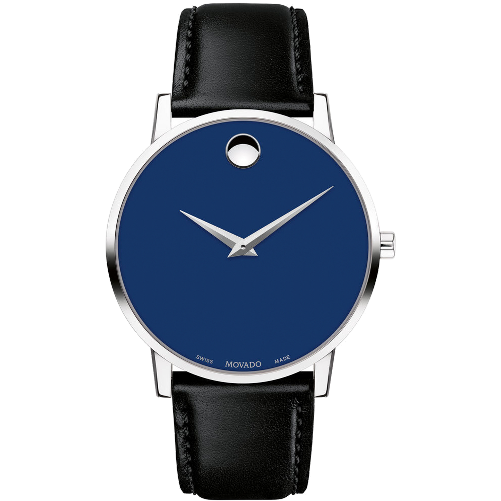 ਮੋਵਾਡੋ ਵਾਚ - ਕਲਾਸਿਕ 40mm ਮਿਊਜ਼ੀਅਮ ਬਲੂ ਡਾਇਲ ਅਤੇ ਬਲੈਕ ਲੈਦਰ