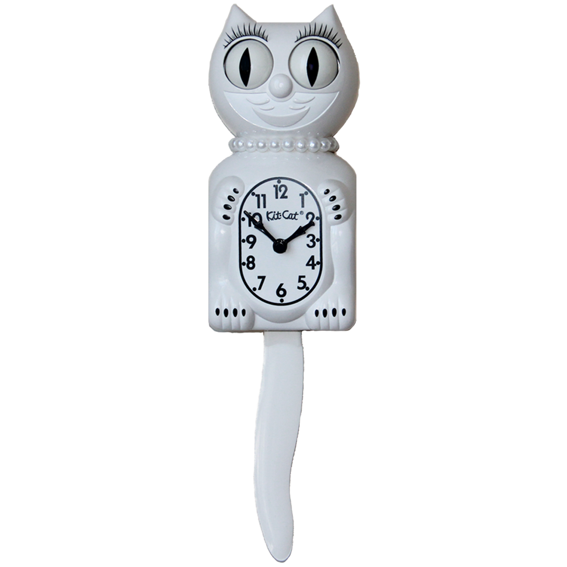ਸੀਮਤ ਐਡੀਸ਼ਨ ਵ੍ਹਾਈਟ ਲੇਡੀ ਕਿੱਟ-ਕੈਟ ਕਲਾਕ ਮੋਤੀ ਦੇ ਹਾਰ ਅਤੇ ਪਲਕਾਂ ਦੇ ਨਾਲ