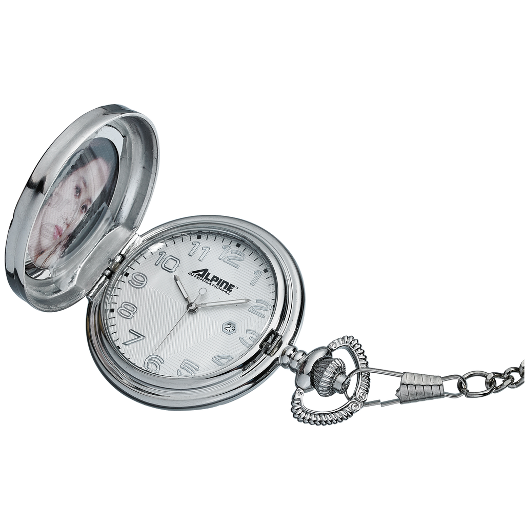 Alpine Quartz Pocket Watch - Silver with Photoframe