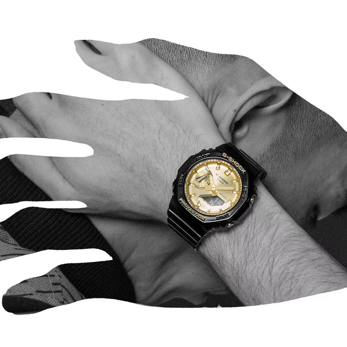 Go metal-clad in cool, sophisticated color with a slim GA-2100 that inherits the design concept of the first-ever G-SHOCK.