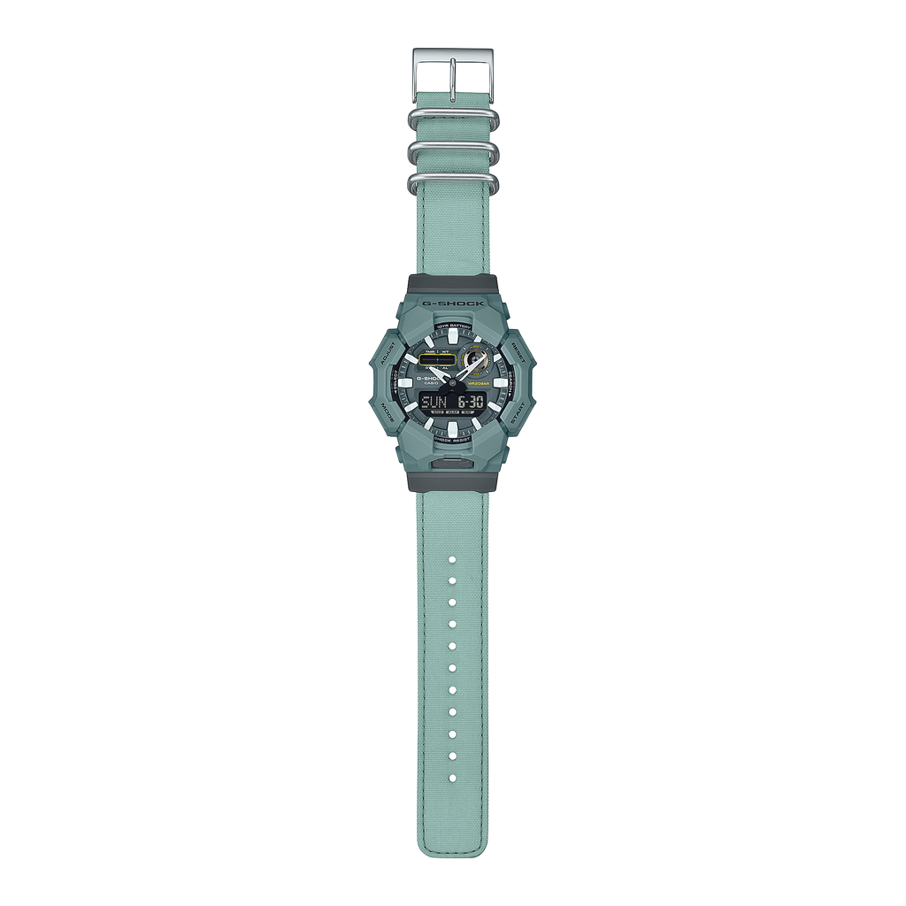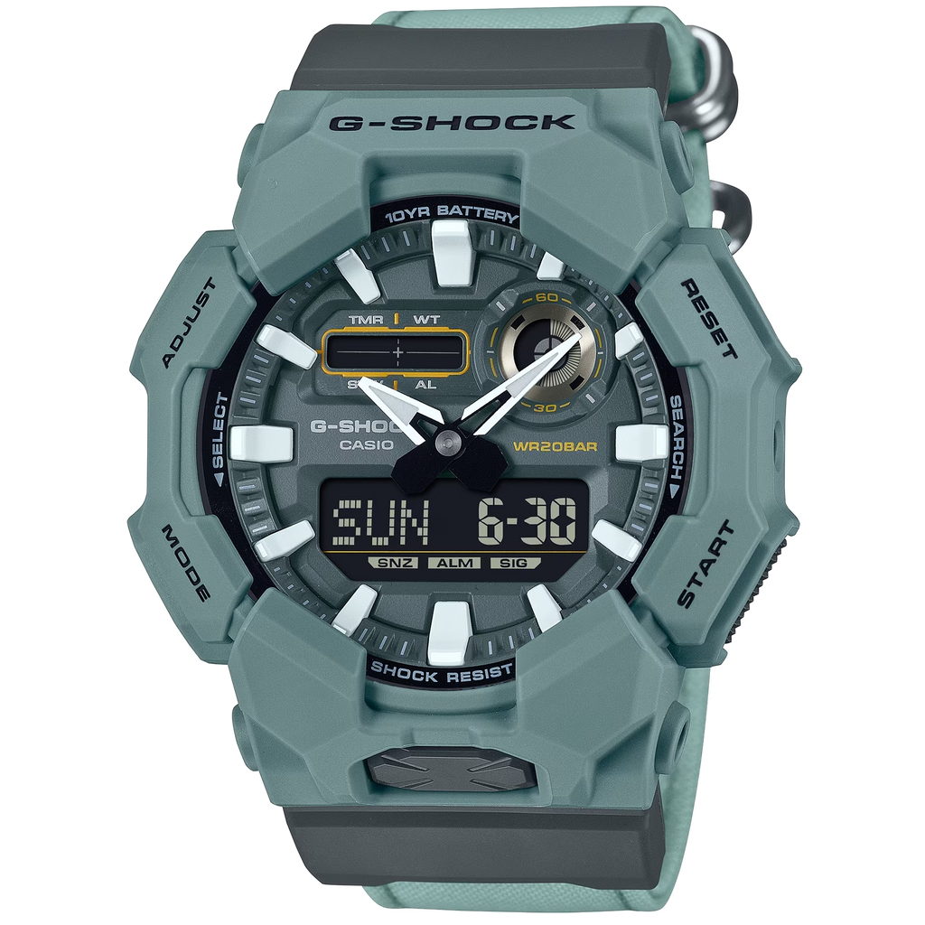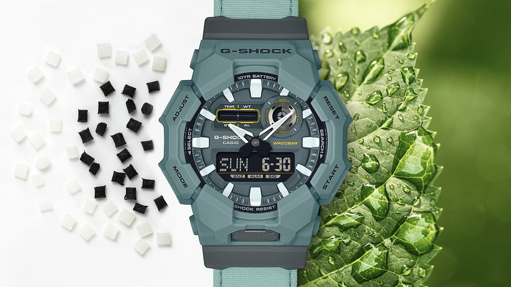 The GA-010 deliver the shock-resistance to withstand hard use and a battery that lasts for 10 years. Key resin components are made with bio-based resin, a material expected to help reduce environmental impact.