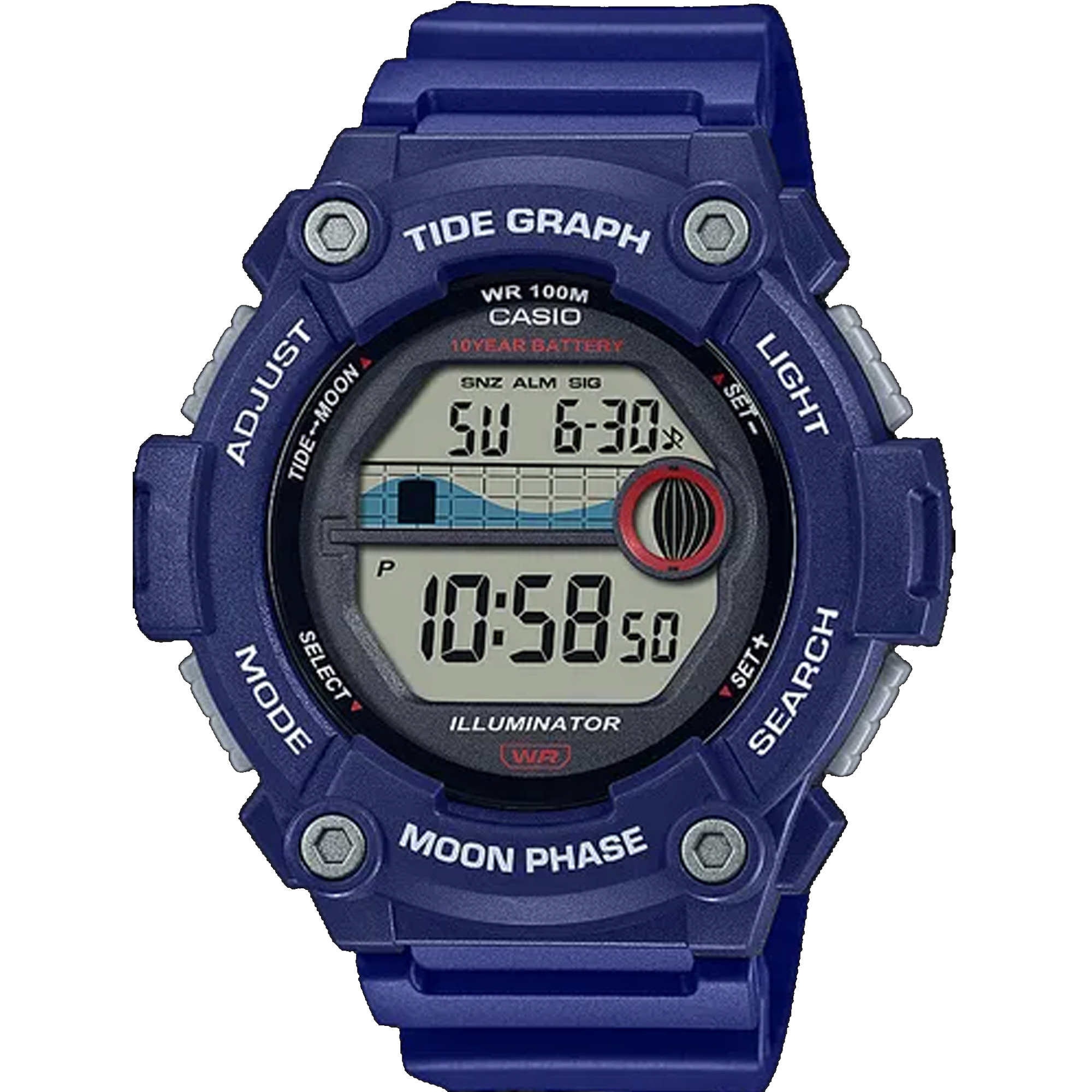 The WS1300H-2AV starts with a durable blue resin exterior design, 100-meter water resistance, and 10-year battery life. Then add on-board tide graph, moon data, and LED light ensuring an easy read even in the dark, to deliver everything a water sports enthusiast needs, right at your fingertips.