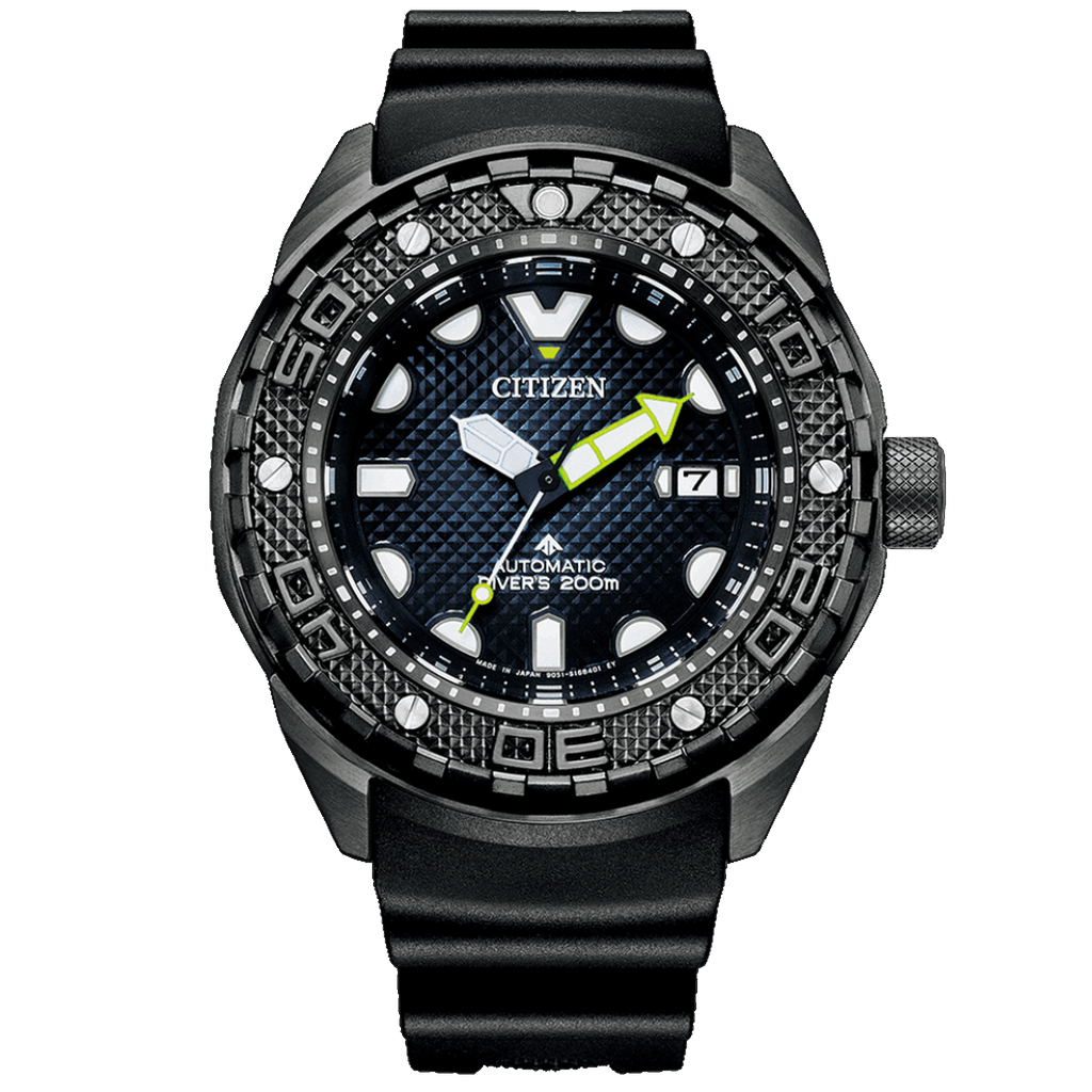 The new Cal. 9051 movement uses anti-magnetic materials for the balance spring and surrounding components to boost the overall magnetic resistance of the watch. This new Promaster Auto Diver is capable of maintaining performance even when placed 1 centimeter from a device emitting a magnetic field of 16,000 A/m. The watch is also resistant to magnetic fields from everyday devices, including smartphones, and it can even be used aboard ships with magnetic compasses. In addition to magnetic resistance, the watch also has ISO compliant water resistance up to 200 meters.