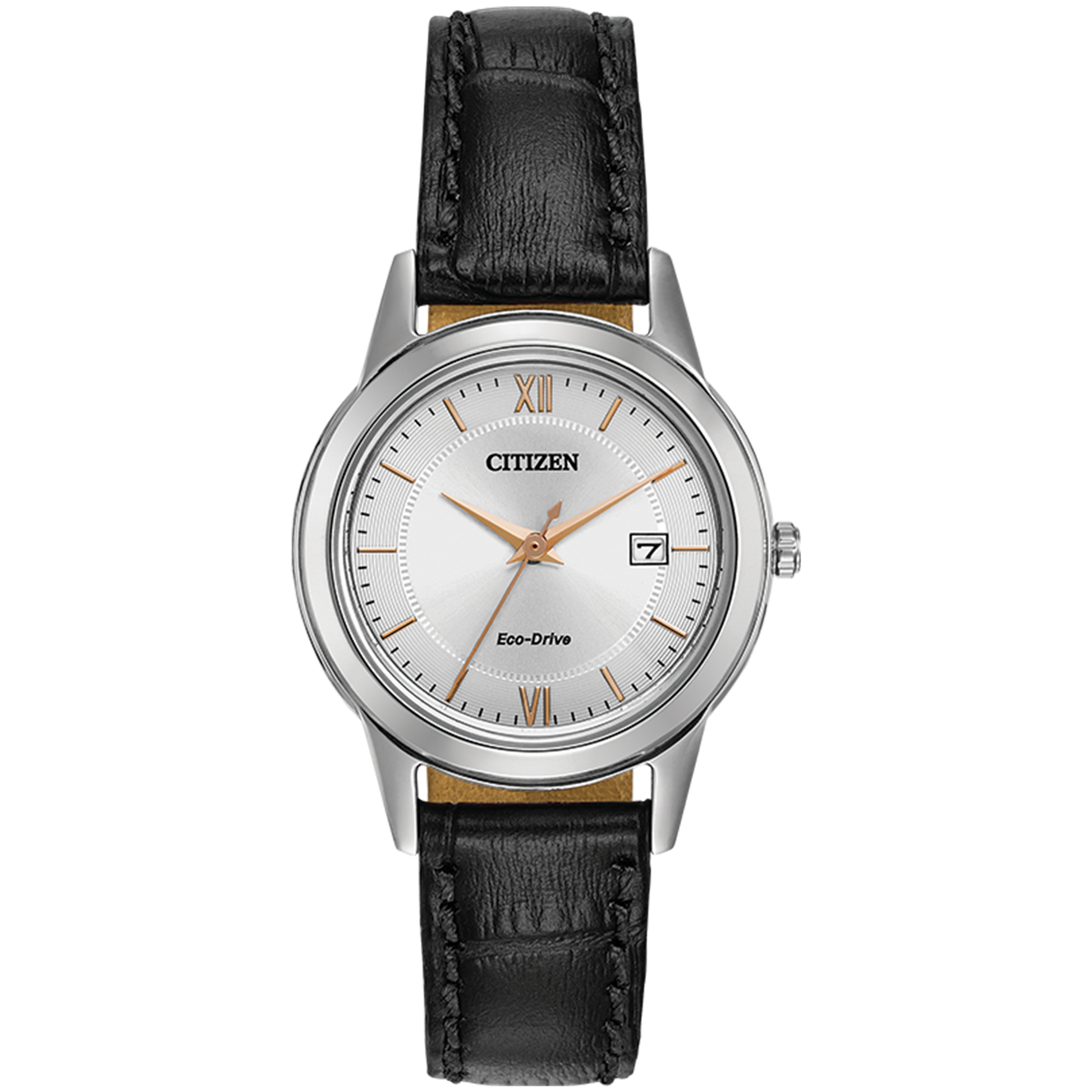 Introducing a classic design from CITIZEN®'s Corso collection—a traditional dress timepiece. Featuring a sleek, stainless steel case complemented by a rich black leather strap, this watch boasts a metallic silver-tone dial, elegantly enhanced with rose gold-tone accents and the convenience of a date display.