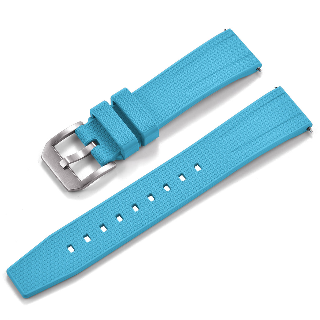 FKM rubber is the ultimate material for modern watch bands, combining exceptional durability with premium comfort. Known for its superior resistance to heat, UV rays, and stains, FKM rubber ensures your band stays pristine even in extreme conditions. Its soft, flexible feel provides all-day comfort, while its rugged strength makes it perfect for active lifestyles. Paired with quick-release pins, FKM rubber bands offer effortless strap changes, letting you customize your watch for any occasion in seconds. With its blend of functionality, durability, and sleek design, FKM rubber sets the standard for high-performance watch bands.