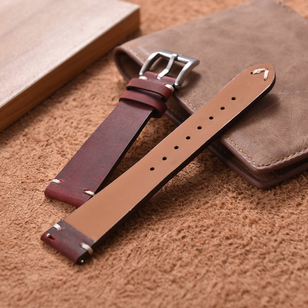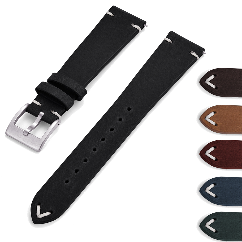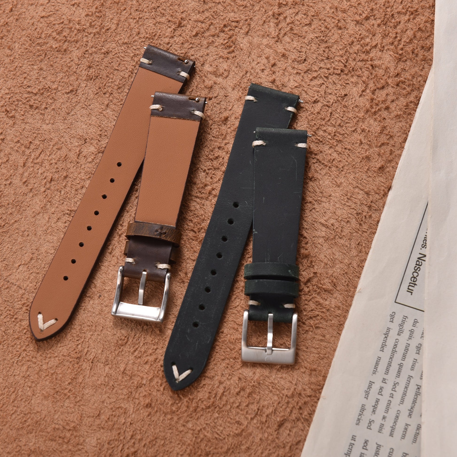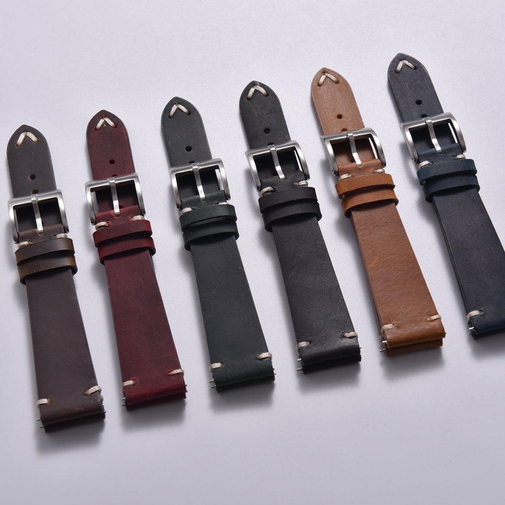 Rich with character and designed to age beautifully, the Halifax Watch Bands Crazy Horse Leather Strap offers a rugged yet refined look for your watch. Crafted from premium full-grain leather, each strap develops a unique patina over time, telling a story with every wear. The supple texture and natural finish ensure maximum comfort right out of the box, while the stitched edges and brushed stainless steel buckle add a timeless, durable touch. Perfect for casual, vintage, or field watches.