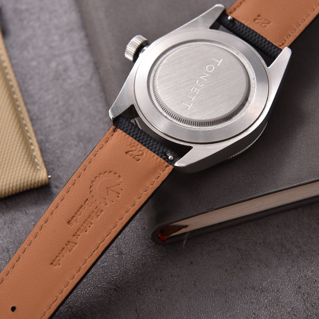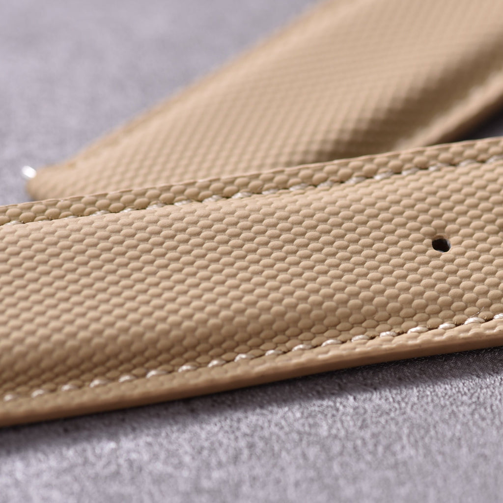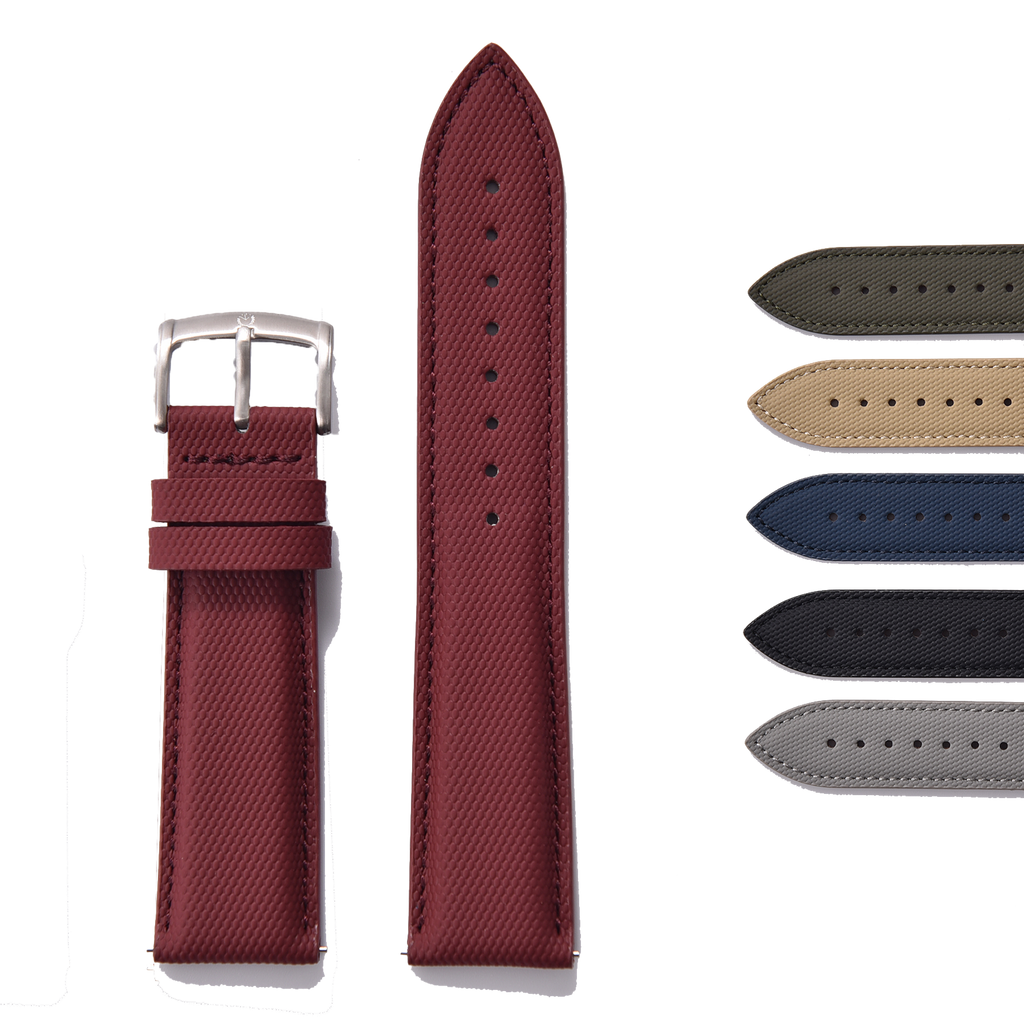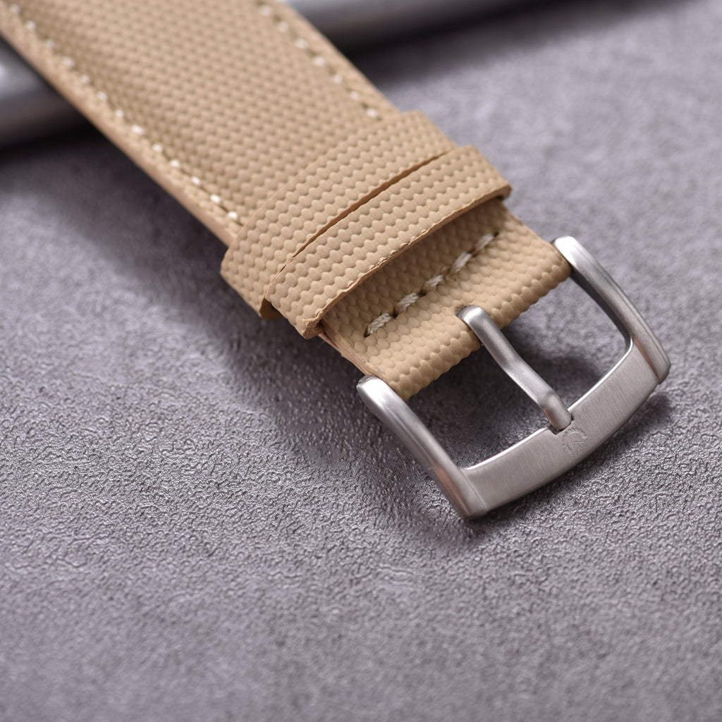 Engineered for the discerning watch enthusiast, the Endurance Sailcloth Strap is the ultimate fusion of performance and refinement. Crafted from genuine woven sailcloth for exceptional abrasion resistance and paired with a supple leather backing for unmatched comfort, every detail is designed to elevate your timepiece. The textured exterior offers a bold, sophisticated look while maintaining resilience against water, UV exposure, and daily wear. Finished with precision stitching and a brushed stainless steel buckle, the Endurance Sailcloth Strap delivers a tailored fit and uncompromising style, whether at sea or in the city.