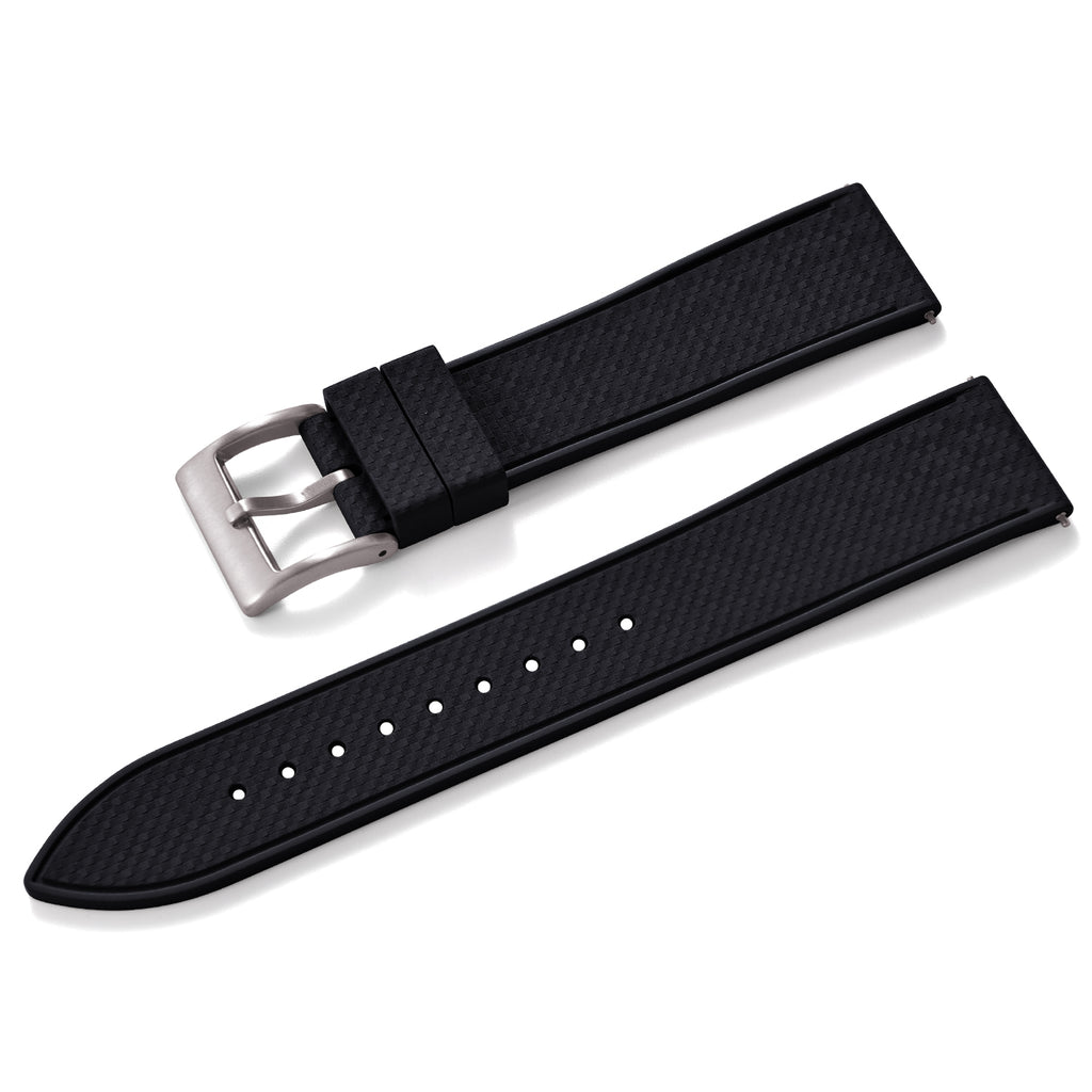 FKM rubber is the ultimate material for modern watch bands, combining exceptional durability with premium comfort. Known for its superior resistance to heat, UV rays, and stains, FKM rubber ensures your band stays pristine even in extreme conditions. Its soft, flexible feel provides all-day comfort, while its rugged strength makes it perfect for active lifestyles. Paired with quick-release pins, FKM rubber bands offer effortless strap changes, letting you customize your watch for any occasion in seconds. With its blend of functionality, durability, and sleek design, FKM rubber sets the standard for high-performance watch bands.
