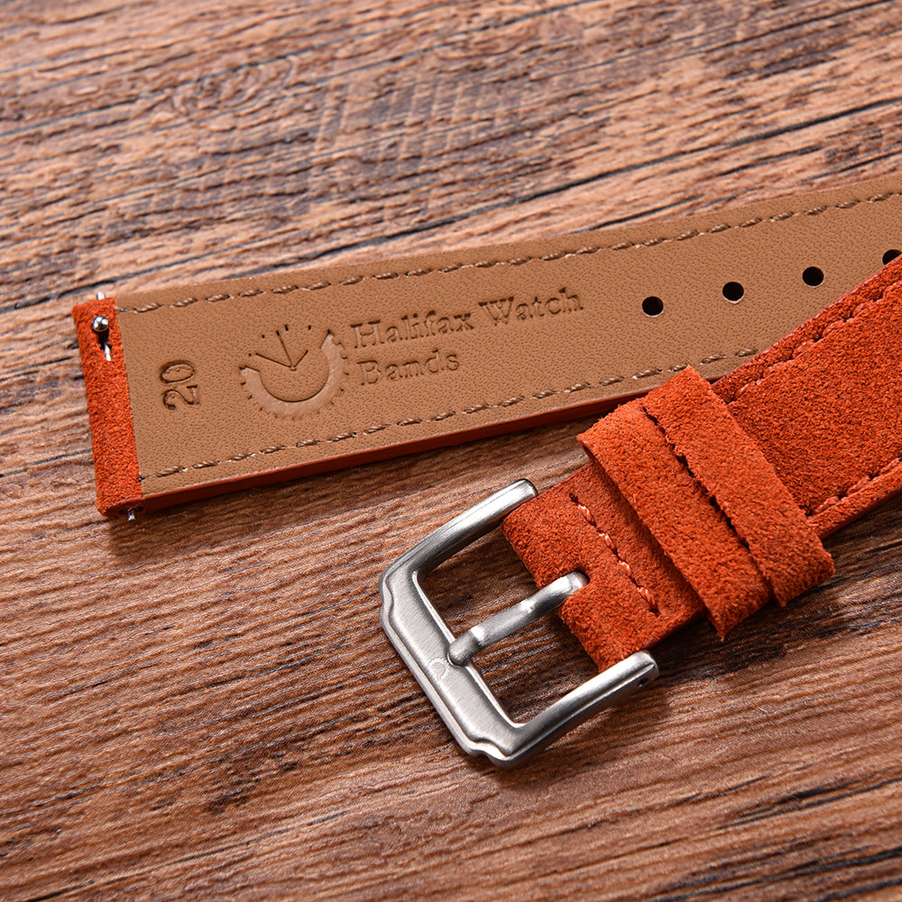Elevate your timepiece with the Halifax Watch Bands Premium Suede Leather Watch Band. Crafted from high-quality suede leather, this strap delivers a refined yet relaxed aesthetic perfect for both casual and formal occasions. The velvety texture of the suede offers a tactile experience, while its supple material ensures all-day comfort on your wrist.