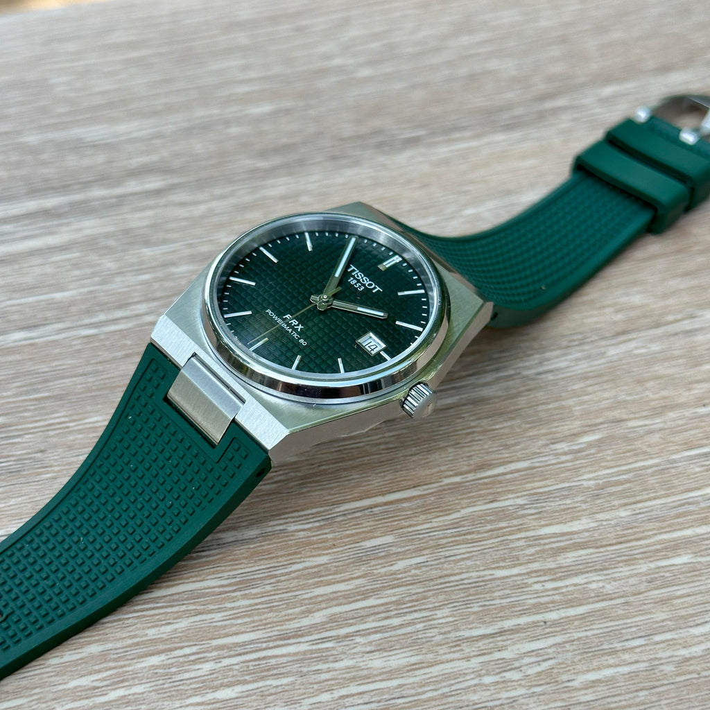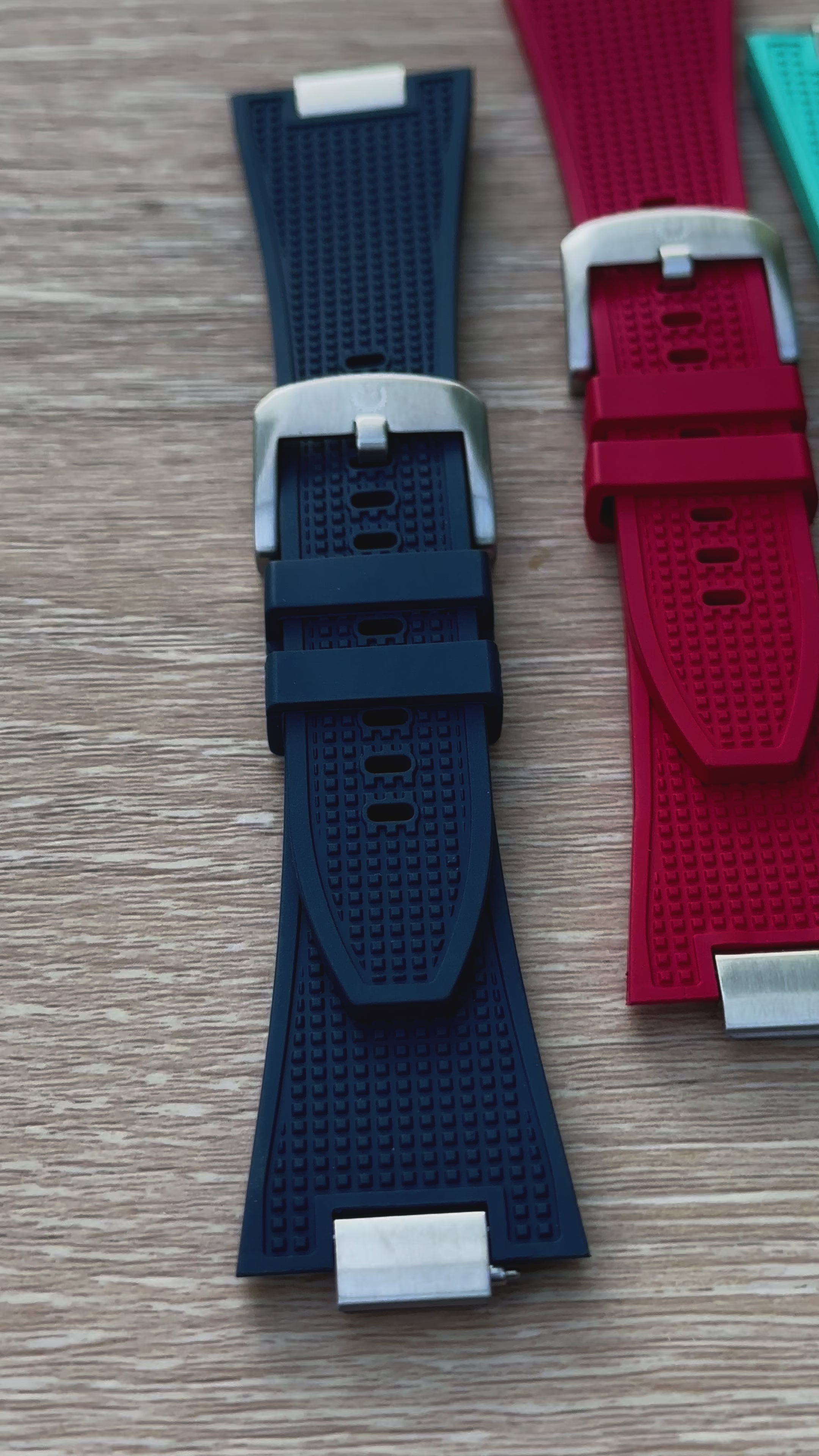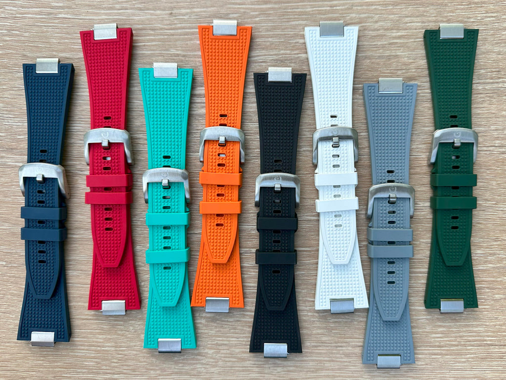 FKM rubber is the ultimate material for modern watch bands, combining exceptional durability with premium comfort. Known for its superior resistance to heat, UV rays, and stains, FKM rubber ensures your band stays pristine even in extreme conditions. Its soft, flexible feel provides all-day comfort, while its rugged strength makes it perfect for active lifestyles. Paired with quick-release pins, FKM rubber bands offer effortless strap changes, letting you customize your watch for any occasion in seconds. With its blend of functionality, durability, and sleek design, FKM rubber sets the standard for high-performance watch bands.