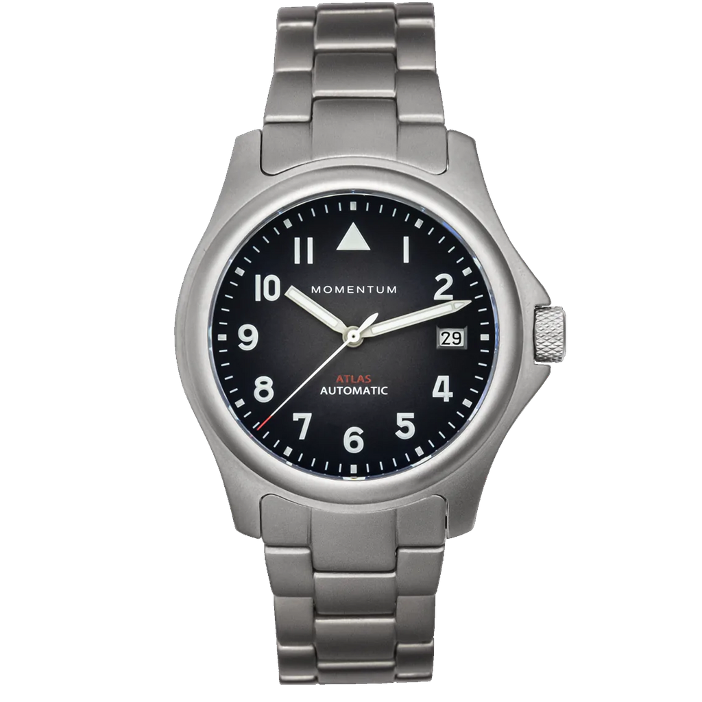 The iconic Atlas model, now with an automatic movement. The Atlas Automatic blends timeless field watch style with upgraded specs in a lightweight 38mm titanium case. This is the one watch that can do it all.