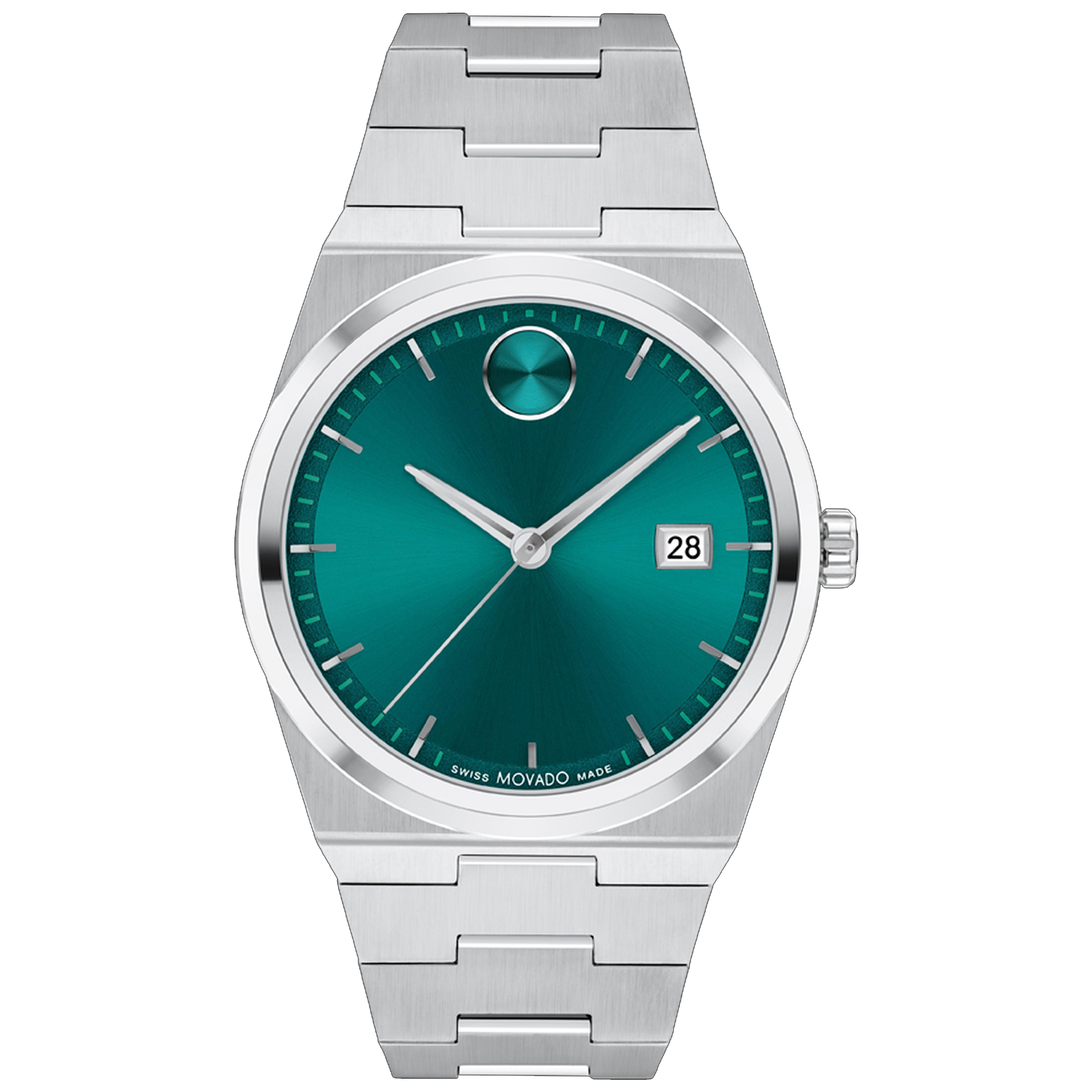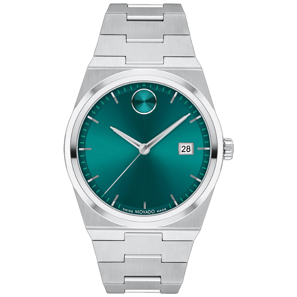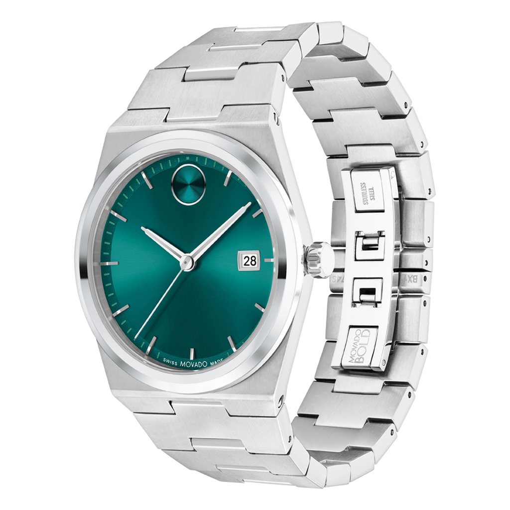 The BOLD Quest ventures into the future with a contoured case and a seamlessly integrated bracelet. This 40mm timepiece showcases a captivating green sunray dial, complemented by steel hands and the distinctive dot marking 12 o'clock.