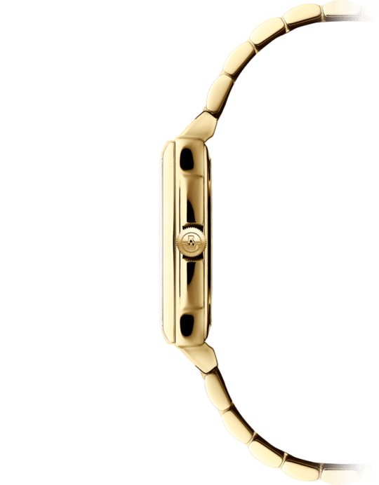This new quartzmodel adopts a sophisticated art deco appeal with an elongated rectangular face and slim 6.25 mm case. This is our shallowest case design to date which gives a very sleek profile to this watch.