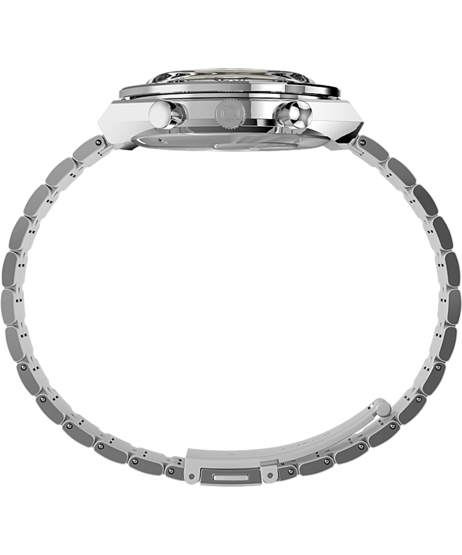 Roar across the finish line with our high-performing Q Timex Chronograph. Inspired by the original motoring watches that graced the tracks of Europe’s most iconic races, this timepiece celebrates the endurance of our legendary 1970s Q Timex. An ultra-precise chronograph movement and black tachymeter bezel recreate the finesse and function of a true racing watch, allowing you to determine elapsed time and average speed like the greatest daredevils in motorsports. Contrasting sub-dials, a date feature, hand-applied dimensional indices, and an updated Q Timex logo smolder against a jet-black dial, while a brushed and polished stainless-steel case and crown bring dynamism and durability to its retro construction. Infinitely wearable, an adjustable stainless-steel bracelet makes for a sporty presentation that’s ready to hit the road whenever you are.