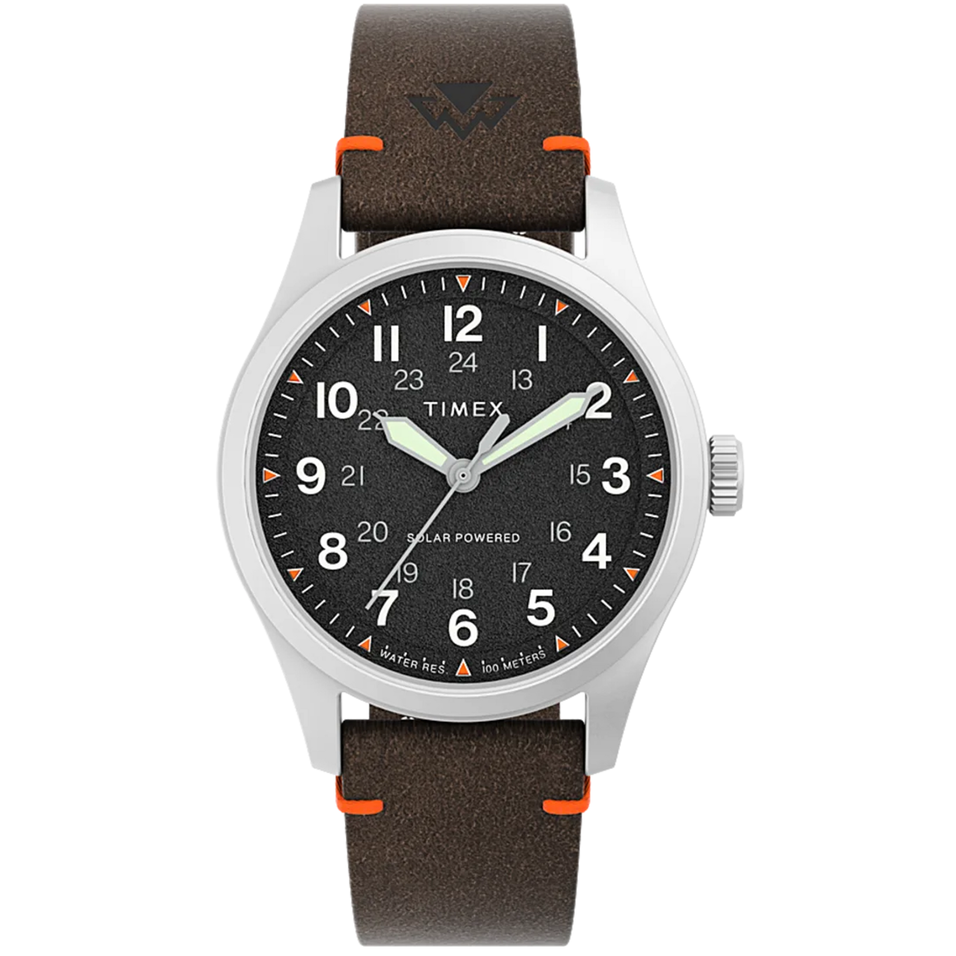 Take what you love about the Field Post 41 Solar, and scale it all down to a slightly retro profile that harkens back to military-issue watches from decades past. At 36mm diameter, the Field Post 36 Solar is the perfect size for lovers of vintage watch design — and anybody with a smaller wrist. Like its bigger brother, this watch provides a reliable solar movement with up to a 4 month power reserve, anti-reflective sapphire crystal, 100 meters of water resistance, a screw-down case back and crown, luminescent hands and dial markings, and a comfortable brown Ecco™ DriTan™ leather strap made with eco-friendly methods. Put all that together and you’re getting a classic field watch with modern tech that keeps up with you day after day.