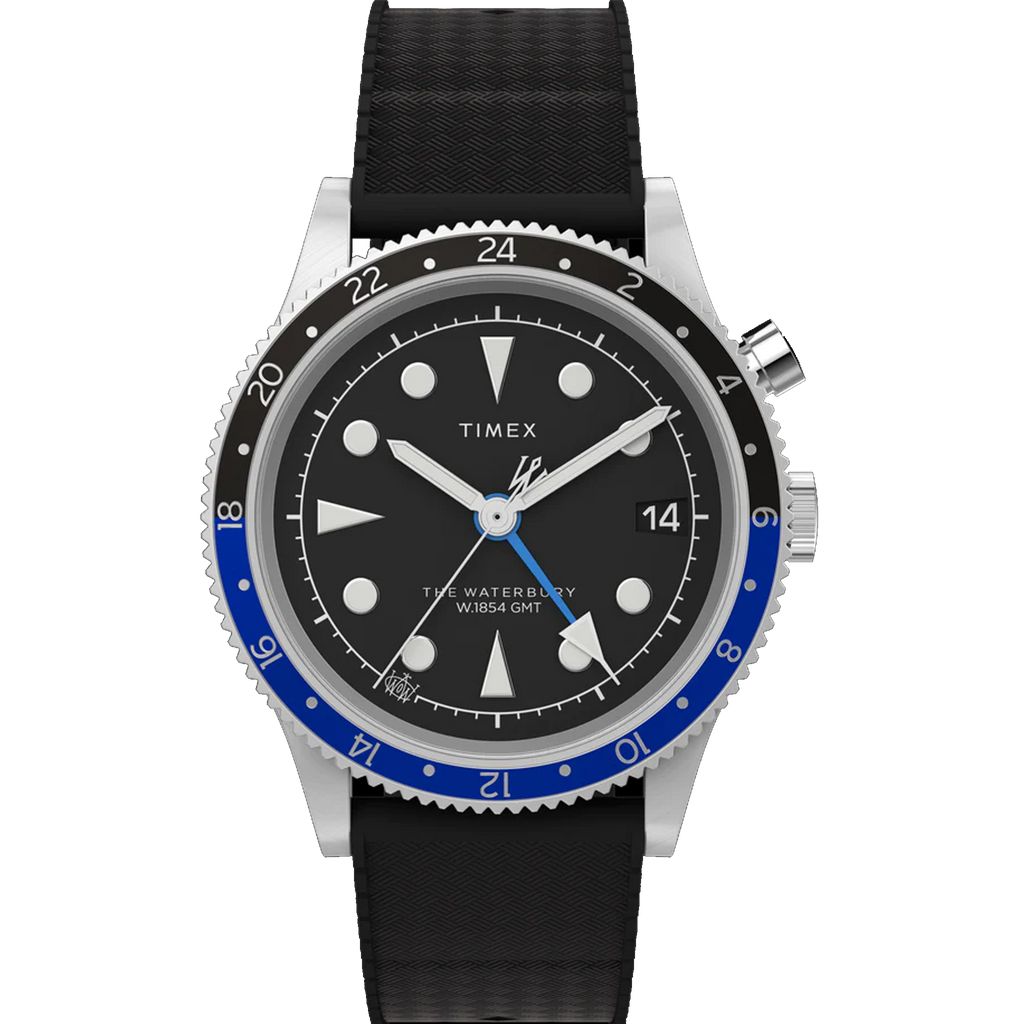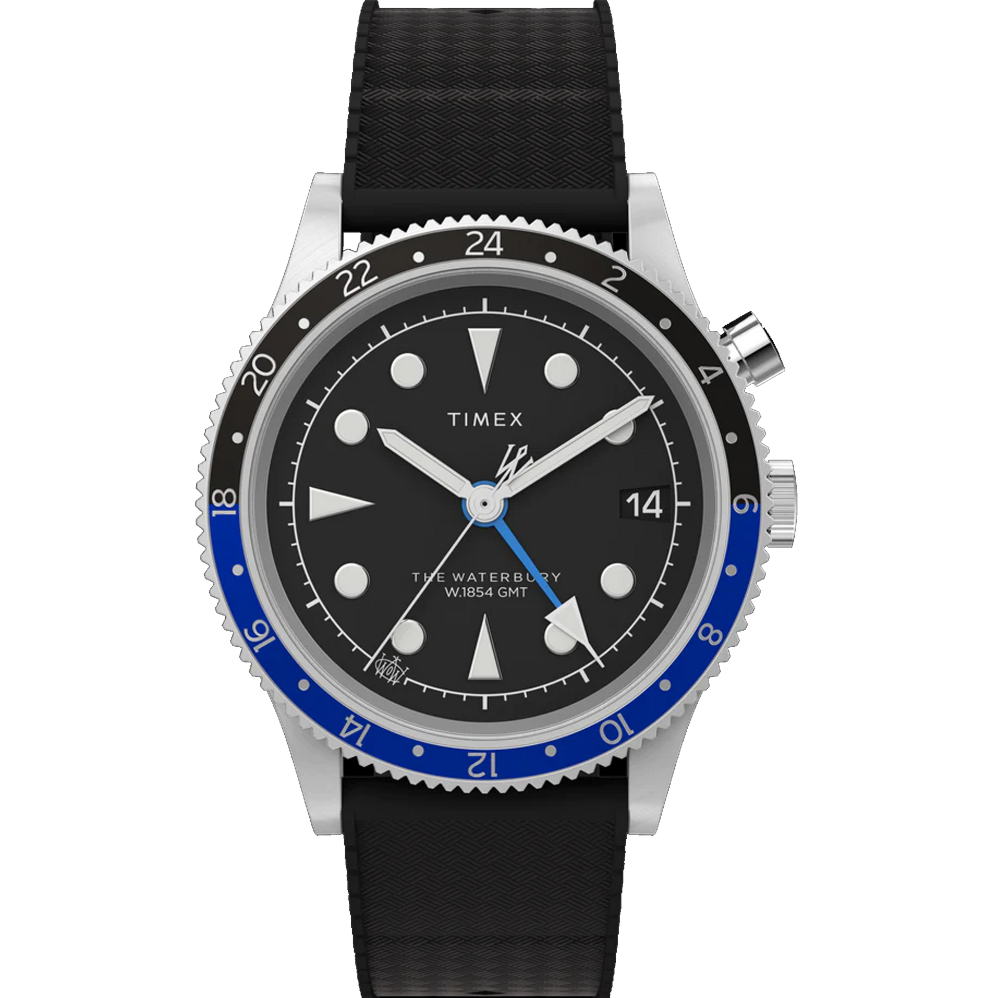 With Timex's Waterbury Traditional GMT, they’ve blended traditional craftsmanship with the practicality of a GMT movement. The watch can track an additional time zone thanks to a fourth hand on the black dial, an immensely practical feature for world travelers and global connections. With a 39mm stainless-steel case profile, rotating top ring, handy date feature, and synthetic rubber strap, the Waterbury Traditional GMT is the wristwatch to keep you on time, no matter where you’re touching down tomorrow.