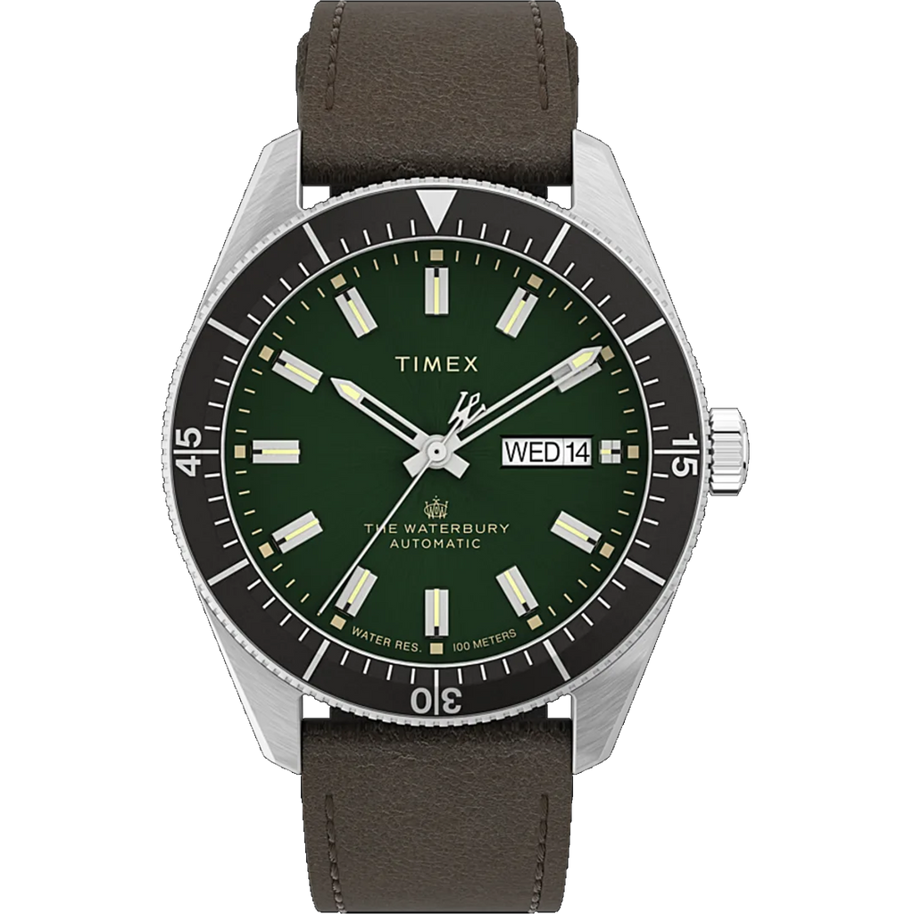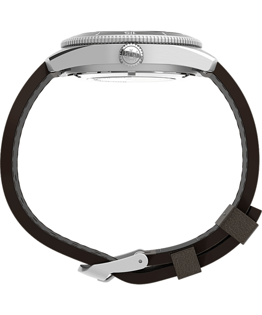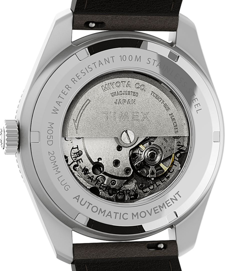 Influenced by the purpose-built timepieces of the mid-twentieth century, the dive-inspired Waterbury Dive Automatic beckons to adventure on land and sea. A rotating top ring brings practicality and vintage appeal to its refined design aesthetic—a feature traditionally used to track elapsed time beneath the waves. They’ve paid homage to the original watch collection by using the iconic Waterbury Watch Company logo on the black sunray dial, crown, and sweeping second hand—which bears the stylized W—while finely finished surfaces display our attention to craftsmanship and detail. Powering this watch is a 21-jewel automatic movement that can also be hand-wound at the crown, creating a timepiece that’s packed to the gills with robustness and accuracy.