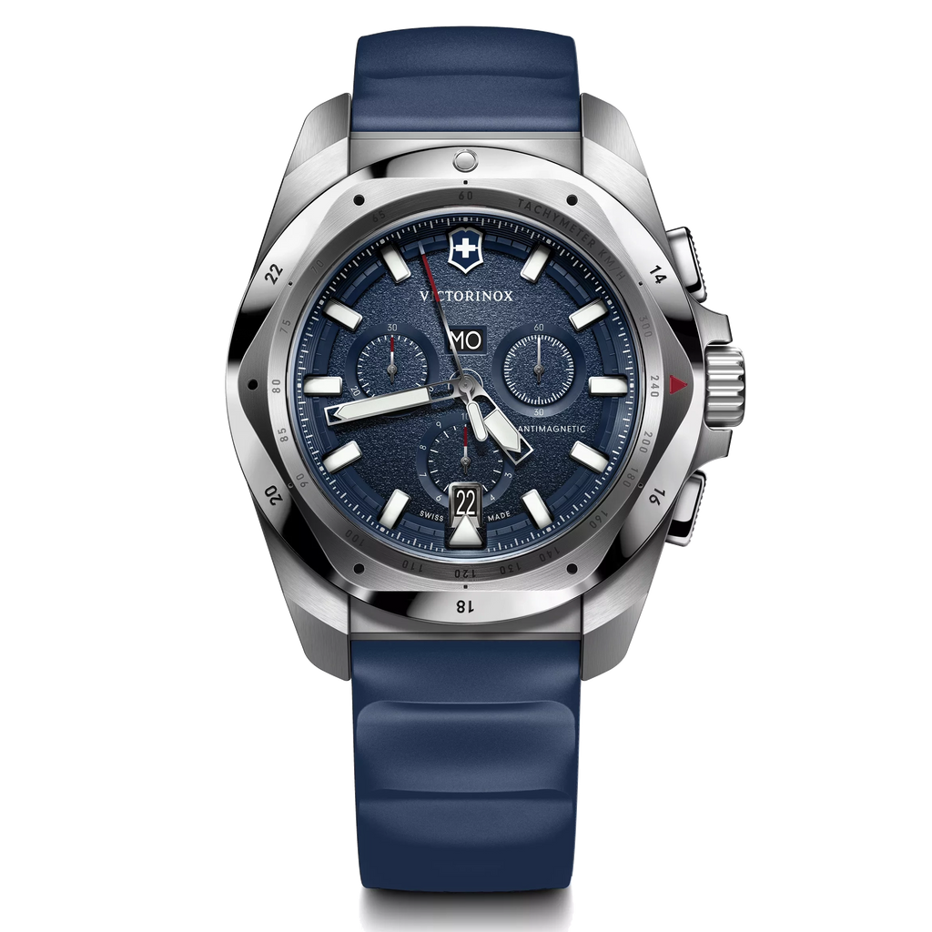 Stay in control of your time with a watch that strikes the perfect balance between understated strength and intelligent design. Quietly assured and reliably accurate, the I.N.O.X. Chrono encapsulates a sense of freedom and calm. With its case and bezel composed of 60–70% recycled stainless steel plus anti-scratch coating for the bezel, this expertly crafted chronograph is finished with a sleek, comfortable rubber strap.